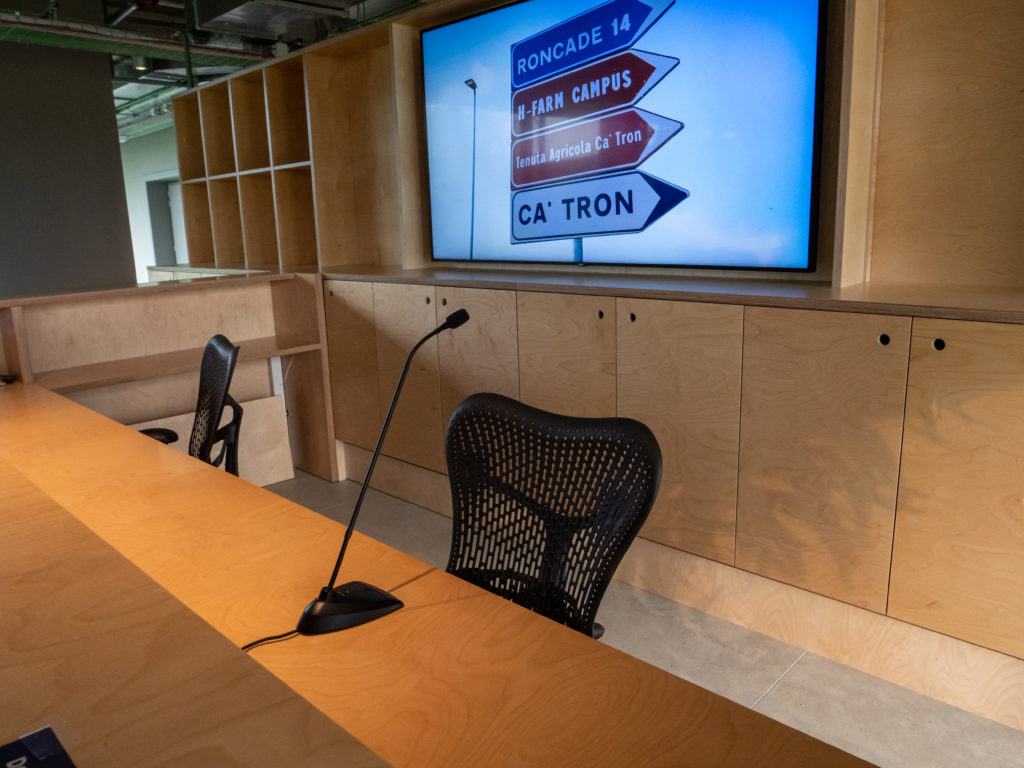 our team of AV specialists have interpreted the needs and objectives given not only by proposing technologically adequate solutions, but also by guiding the client along a careful validation process. The various combinations were first tested with the H-Farm Campus representatives at our headquarters, and then test rooms were set up on site to validate the proposed solution after a month of use in the live situation.
