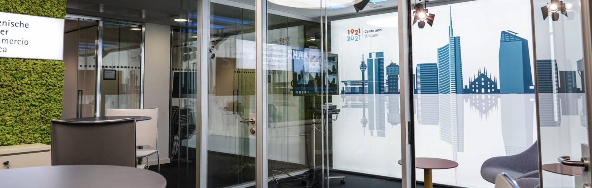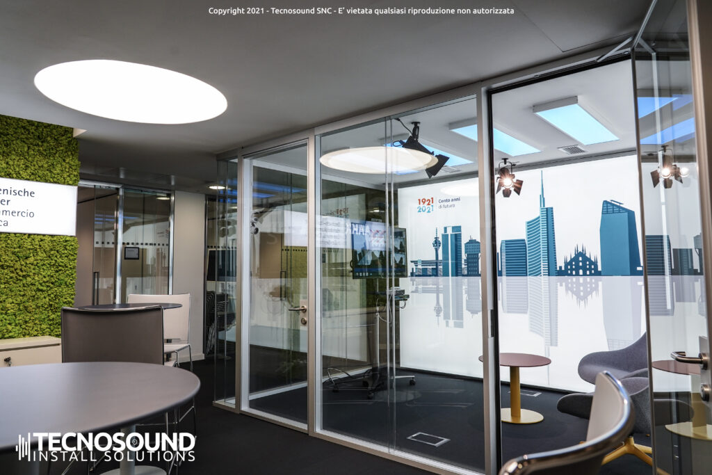 At the Italian-German Chamber of Commerce, situated within Italy’s dynamic economic centre in Milan, has had a small 12sqm meeting room converted into a live streaming hub with the characteristics of a small television broadcast studio, and a user experience that doesn't require the assistance of a director.